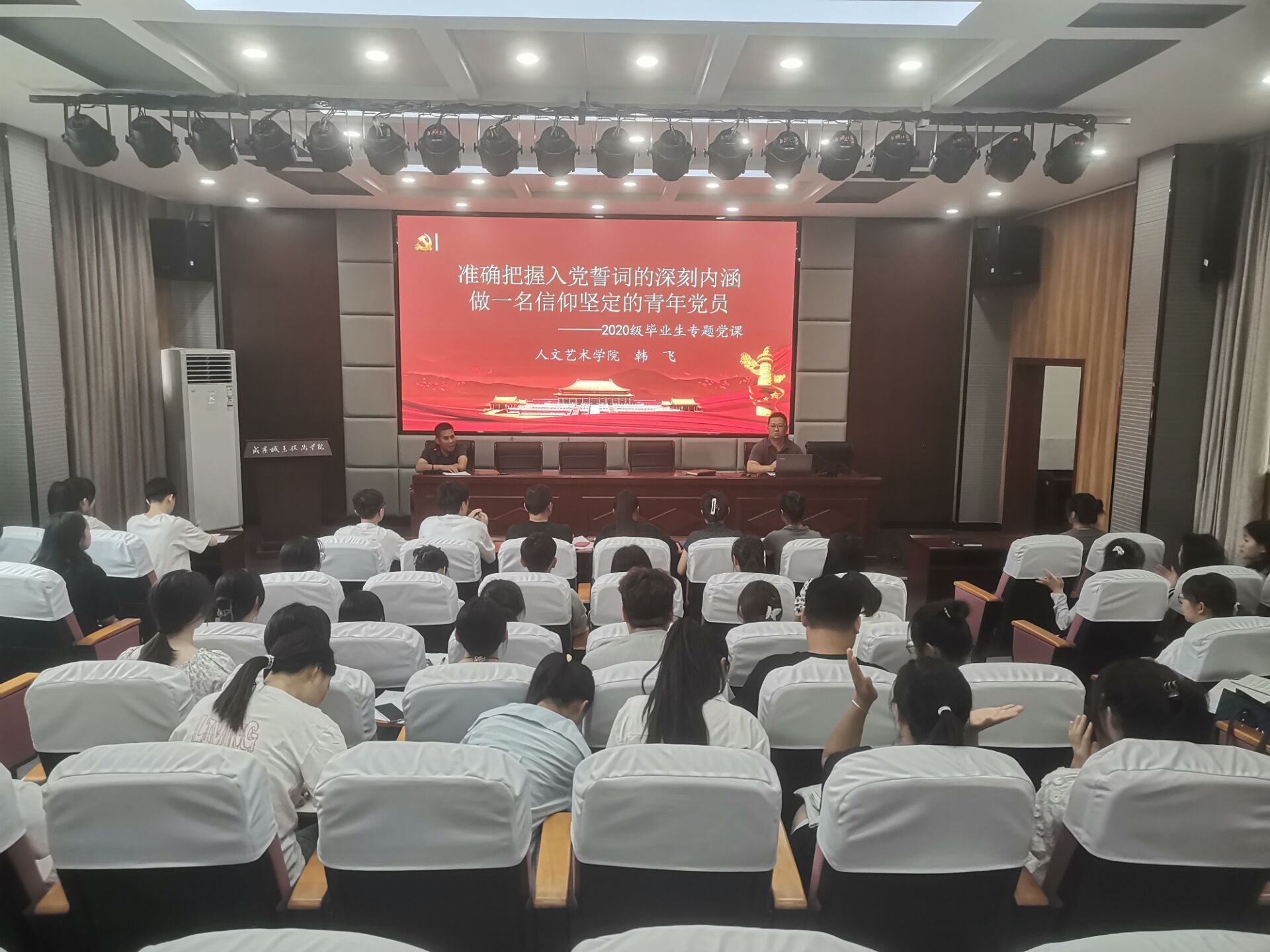 为深入学习贯彻党的二十大精神,扎实做好毕业生党员离校前的教育工作,6月15日下午,亚洲无码人妻党总支书记韩飞在教育实训中心201报告厅为学院20级毕业生党员讲了一堂题为“准确把握入党誓词的深刻内涵 做一名信仰坚定的青年党员”的专题党课。