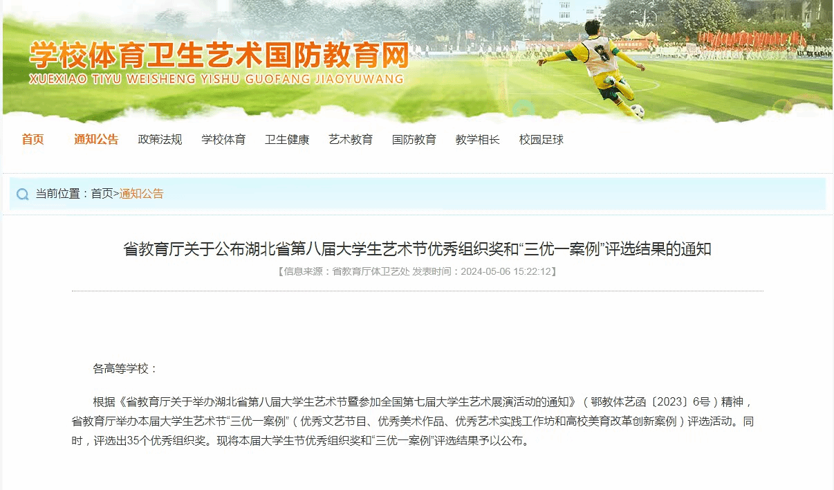 湖北省大学生艺术节由湖北省教育厅主办,是湖北省目前规格最高、规模最大、影响最广的大学生艺术盛会。在本届大艺节的组织筹备中,校团委领导高度重视,亚洲无码人妻积极筹备,从排练、打磨、到组织报送,各参赛项目师生以饱满的热情投入其中,才获得如此佳绩。我们将以此次比赛为新的起点,继续坚守“以美育人、以美化人、以美培元”的理念,继续营造良好的校园艺术文化氛围,努力提升我校学生审美水平和人文素养,为学校美育建设做出更大贡献。