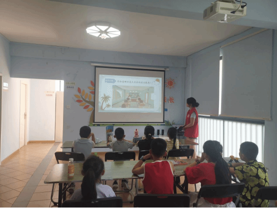活动伊始,志愿者老师变身“健康小卫士”,借助卡通图片和动画视频,用通俗易懂的语言向小朋友们传授夏季防暑降温的诀窍。从正确补充水分、合理使用空调风扇,到预防中暑的小方法,深入透彻的讲解让小朋友们听得兴致勃勃。在食品安全知识板块,主讲人通过绘本和视频的形式,引导小朋友们不要独自下水游泳,也不要盲目地去救人,同时也认识到过量食用冷饮的坏处,树立健康饮食理念。