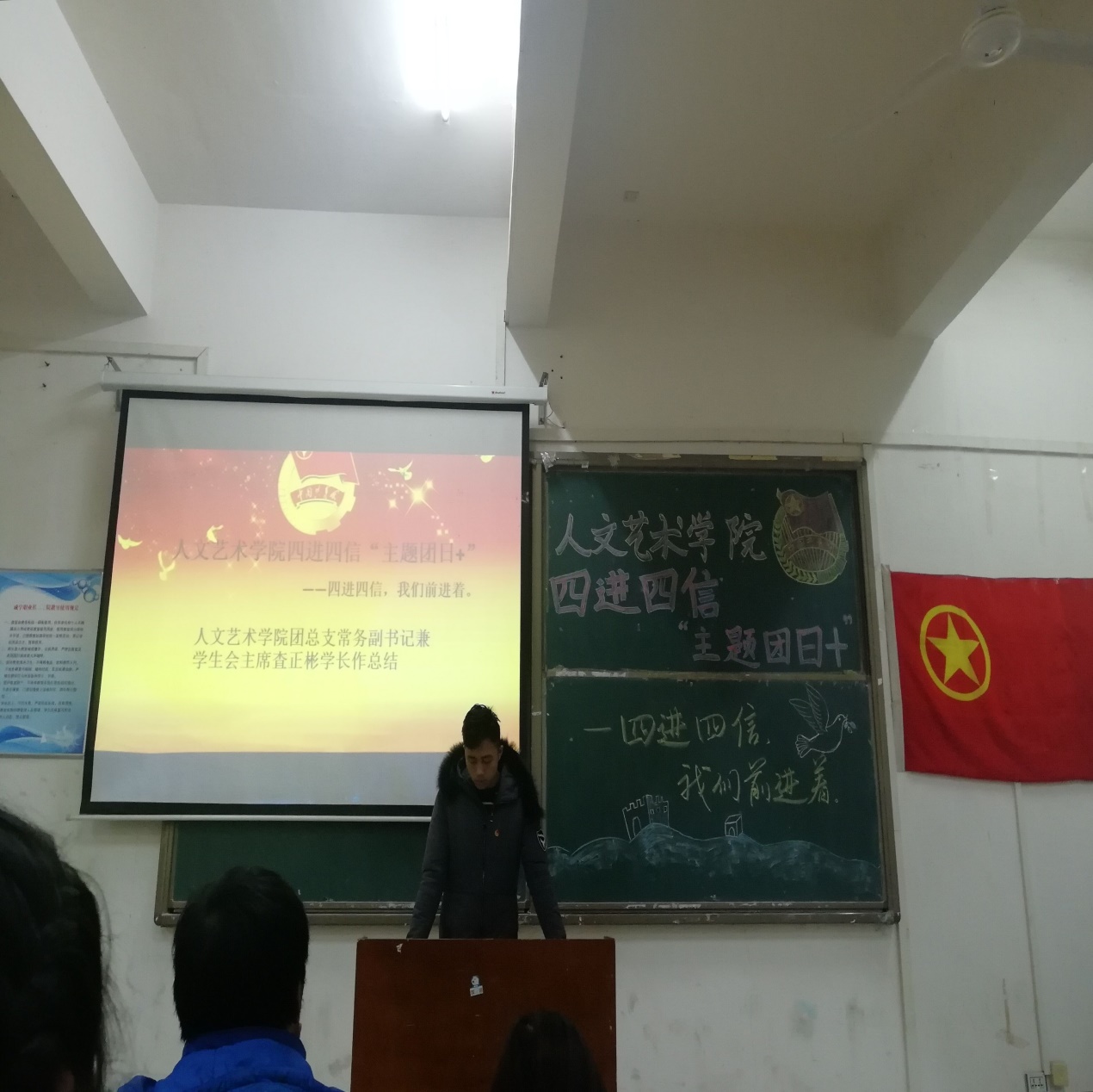 12月28日晚,亚洲无码人妻团总支组织部在文A106教室举行主题为“四进四信,我们前进着”的四进四信 “主题团日+”活动。参加本次活动的有亚洲无码人妻主席团全体成员、团总支学生会全体部长及18级各班班长、团支书。