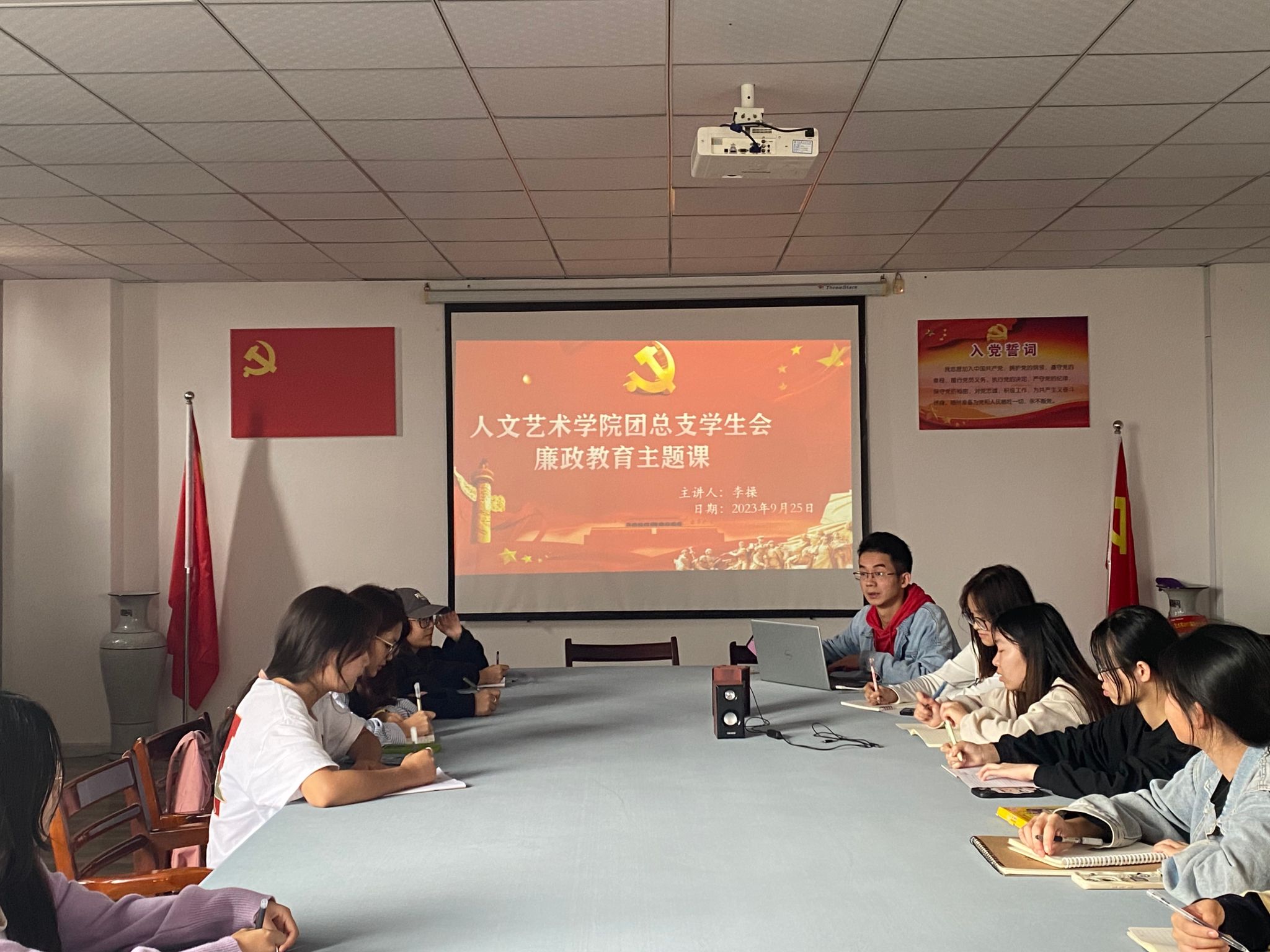 为进一步加强党规党纪教育,不断促进党风廉政建设宣传教育工作,提升宣传教育质量效果,10月9日中午,亚洲无码人妻在教育实训中心7楼会议室召开廉政教育主题团课,会议由院团总支负责人李操主持。