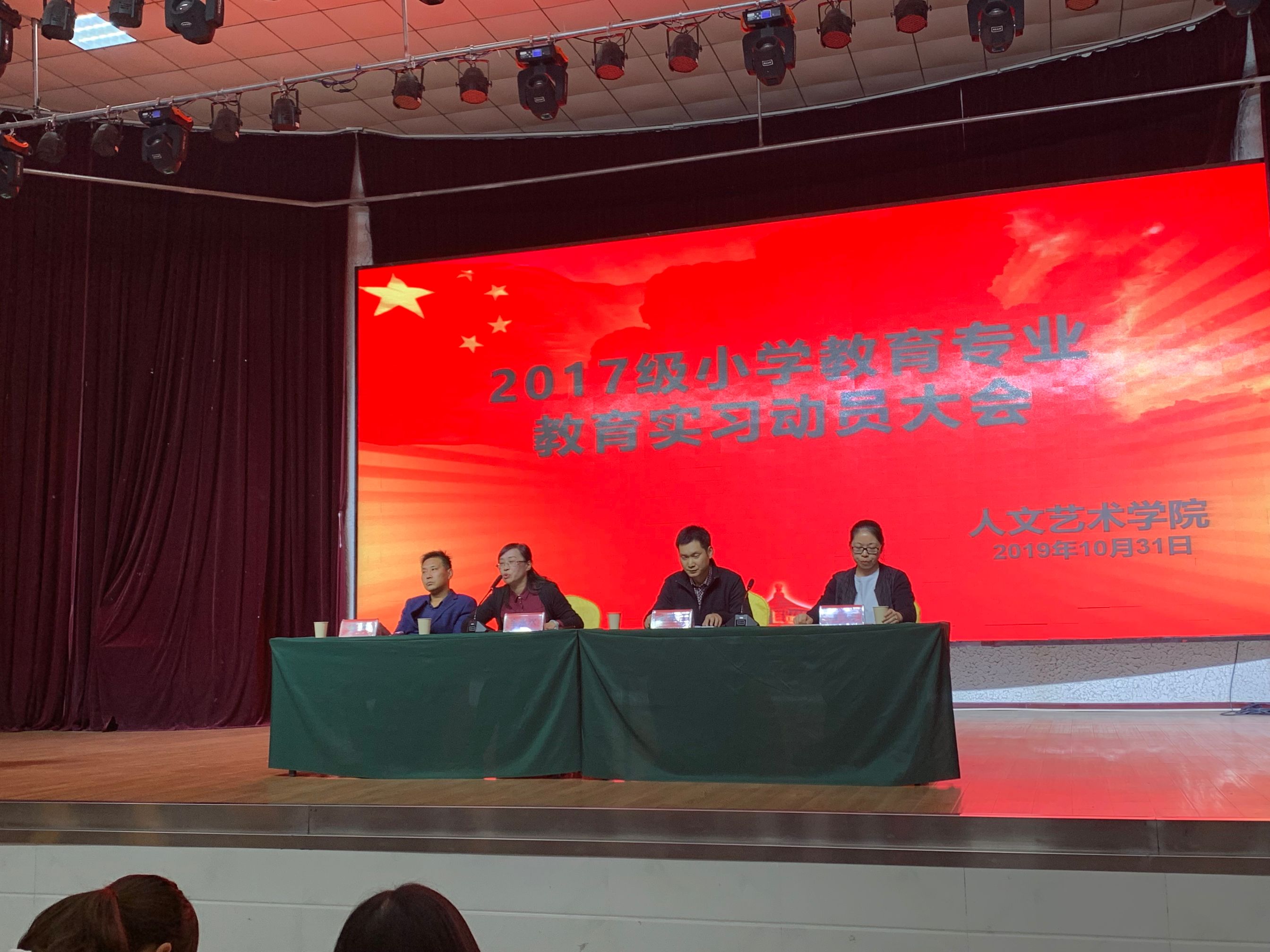2019年10月30日晚7点,亚洲无码人妻在大学生活动中心召开2017级小学教育专业教育实习动员大会。本次大会强调的主要内容有教育实习动员、实习技能、实习职责、安全等方面,参会的领导有院长余永欢,学工副院长杨帅、教学代理副院长方朝阳、小教教研室主任肖琼。