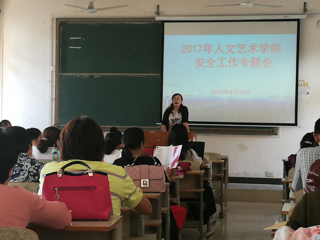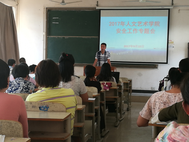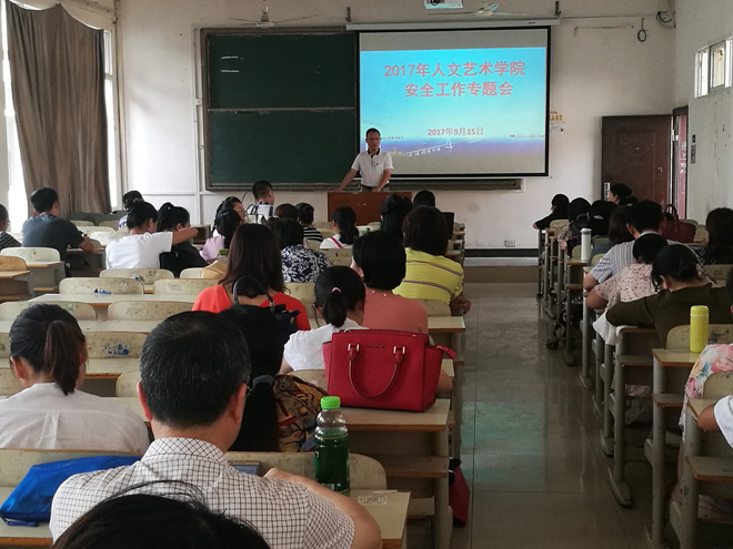 9月15日,亚洲无码人妻举行2017年安全工作专题会,亚洲无码人妻党总支书记卢臻、院长华先宙、副院长余永欢、副院长余谦、副院长陈晓云及学院全体教职员工参加了报告会,会议由卢臻书记主持。