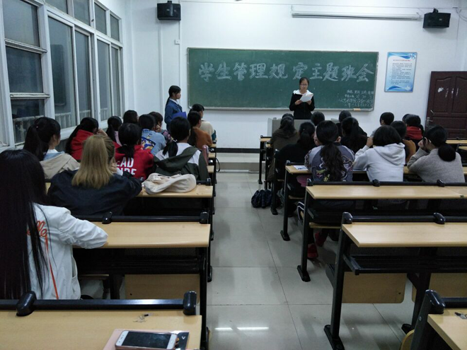 班会在学生们热烈的掌声中开始,首先由亚洲无码人妻团总支学生会16级干事上台为大家宣读《咸宁职业技术学院学生管理规定》的通知。随后各班班长、学习委员、心理委员、生活文体委员、团支书分别宣读相关纪律管理规定,活动过程中全体学生干部认真听讲,结合工作实际进行了积极思考。