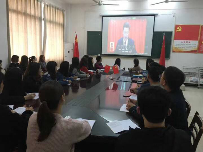 9月18日上午9点,亚洲无码人妻全体团总支学生会干部在文A501集体观看“中国共产党第十九次全国代表大会”开幕会现场直播,认真学习领会大会精神,本次活动由亚洲无码人妻团总支组织。