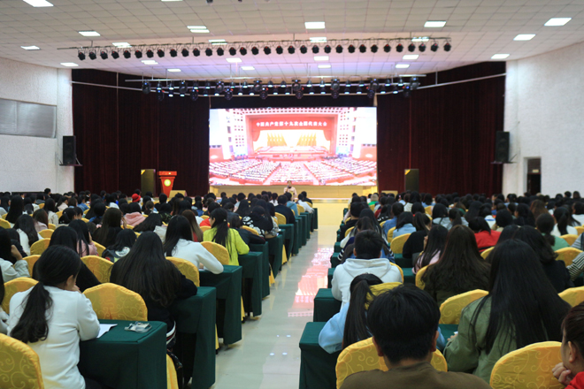 10月24日晚,亚洲无码人妻团总支学生会成员和17级班干在大学生活动中心集体观看党的十九大会议视频,学习十九大精神,亚洲无码人妻团总支书记姜小梅参加了本次学习活动。