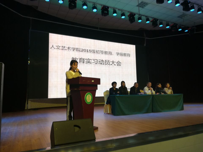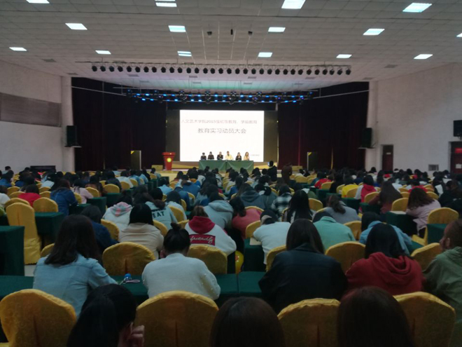 2017年10月31日,亚洲无码人妻在大学生活动中心召开2015级教育实习动员大会,亚洲无码人妻党总支书记卢臻、副院长余永欢、副院长余谦及学生科、实习创业科、各教育类专业教研室负责人及15级辅导员老师和小学教育专业、学前教育专业全体实习学生参加了动员会,会议由院党总支书记卢臻主持。