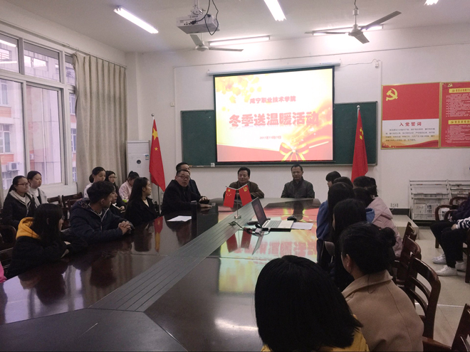 11月27日下午5:00,为响应我校“情暖校园”活动的号召,亚洲无码人妻2017年冬季送温暖活动在文华楼五楼会议室举行,校纪委书记余为民、院党总支书记卢臻、院长华先宙、副院长余谦以及部分辅导员老师出席本次活动,此次本院有39名困难同学受到了资助。