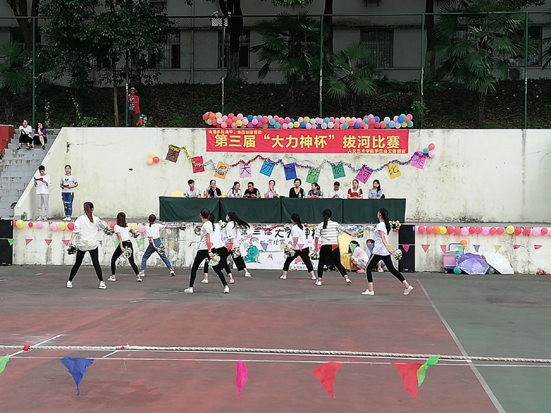 精彩的开场舞拉开了比赛序幕。经过初赛、复赛、半决赛,四组选手顺利进入决赛。决赛依旧采用淘汰制与循环制相结合的形式,分为两场进行。赛场上的较量不仅体现在参赛选手手中的那条麻绳上,赛外亲友的助力呐喊也至关重要。比赛中参赛队员双手紧握长绳,团结一心。参赛的班级成员自发组成啦啦队为比赛队员呐喊“加油”,呐喊声此起彼伏,将整个活动推向了高潮!各班级都排出了最强的比赛阵容。经过激烈的耐力、体力较量,最终15级五年一贯制四班获得冠军,17级语教四班获得亚军,17级语教三班获得季军。