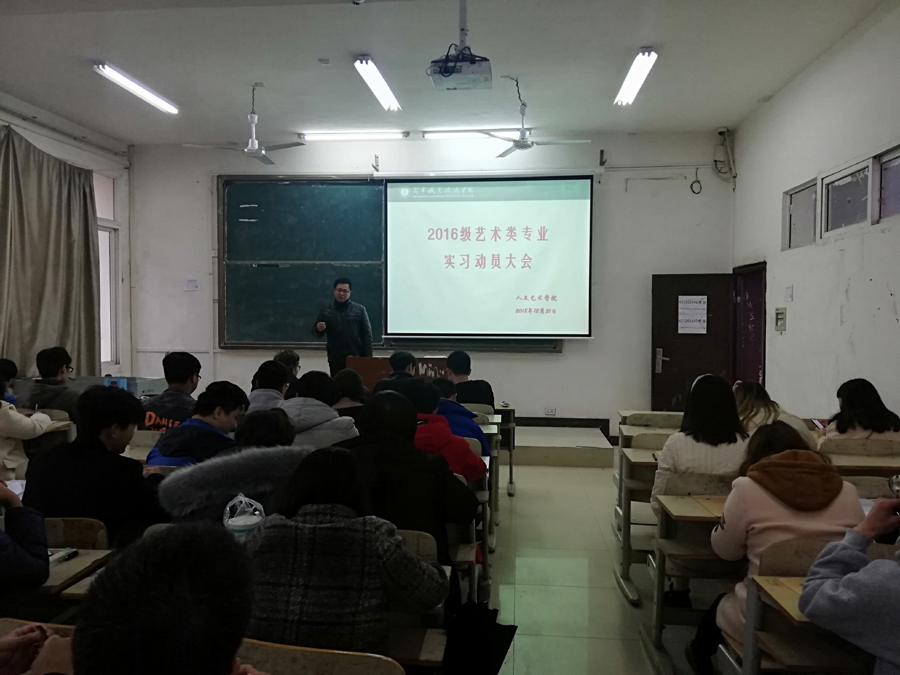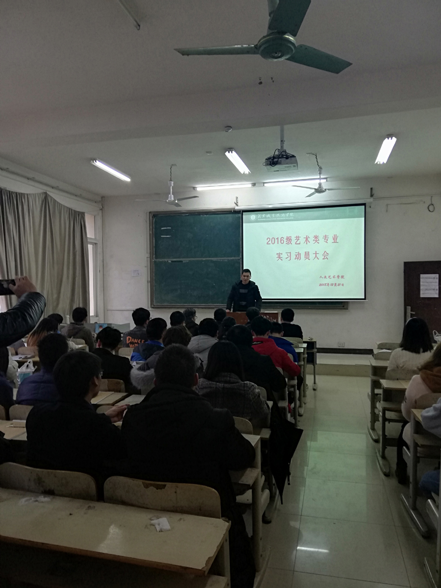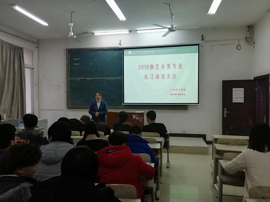 12月21日,亚洲无码人妻举行2016级艺术类专业顶岗实习动员大会。亚洲无码人妻代理副院长方朝阳、学生科科长陈传红、艺术设计教研室主任孙卉、15级艺术类专业辅导员及全体实习学生参加了此次动员大会。