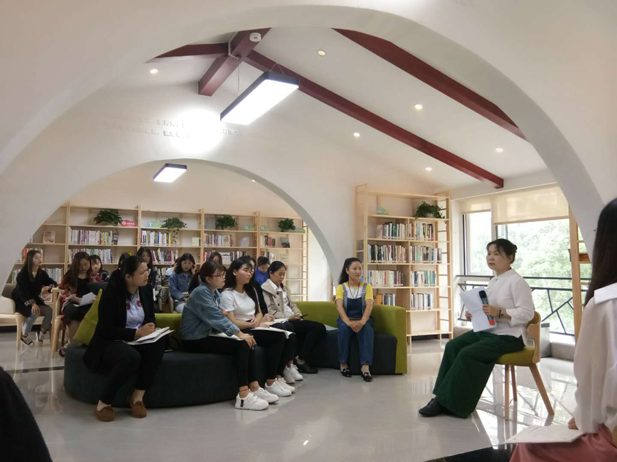 5月16日上午亚洲无码人妻17级学前教育专业国学特色班的同学参加了香城书房国学研学活动。此活动由亚洲无码人妻、咸宁市志远国学馆、香城书房共同主办。国学研学活动分为三个环节:国学理论讲座、国学经典实践教学、国艺实践教学。