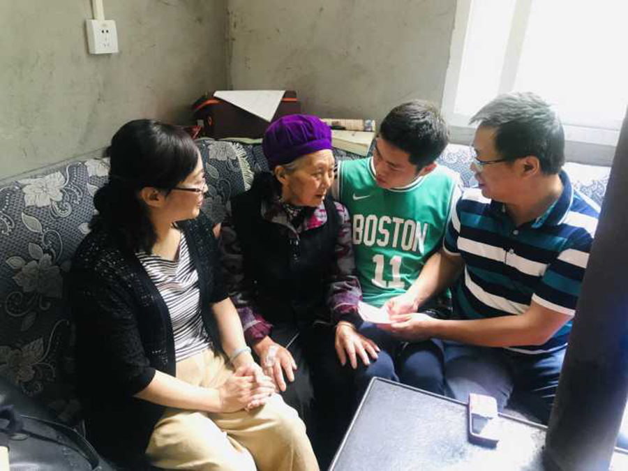 在访问快要结束时,陈科长拿出学校给予贫困学生的慰问金交到奶奶手上说:这是学校对您家里的慰问,数目虽然不多,但这是学校的心意,希望您的孙子在校好好表现,也祝您身体健康,早日康复。临走前还嘱咐学生要好好照顾奶奶,自己也要努力加油。奶奶望着老师们离去的身影,挥着手,眼里泛着光。这次的走访也画上了圆满的句号。