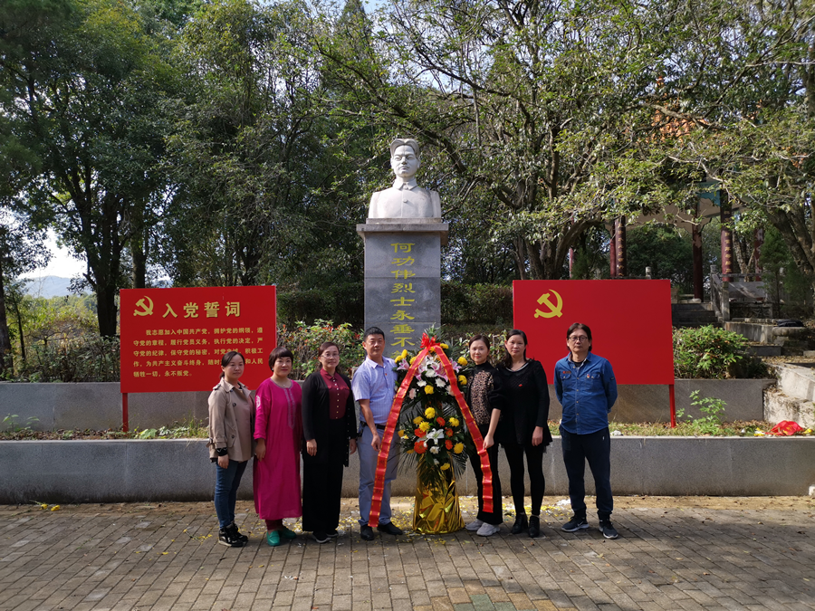 首先,全体党员一起祭扫何功伟烈士纪念园,向何功伟烈士敬献花蓝、重温入党誓词、聆听何功伟烈士的革命事迹。在缅怀先烈的同时,每一位党员要继续弘扬党的优良传统,铭记身上的使命,牢记肩上的责任。