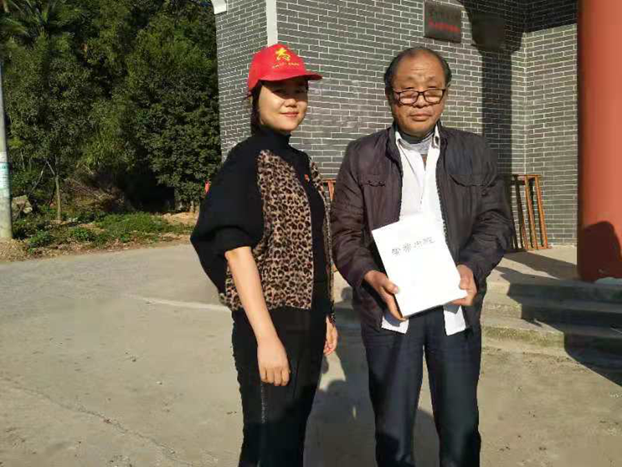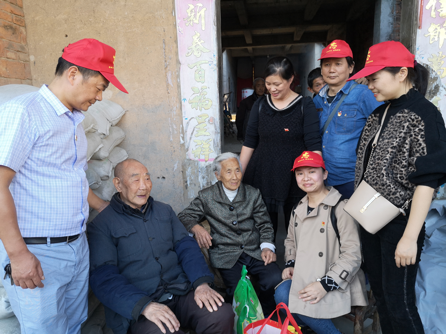 接着全体党员赴大屋雷村,开展走访慰问老革命战士及贫困高龄老人活动。在村委会主任的带领下,看望了一位百岁老革命战士和三名贫困村民,分别给老人们送去了食用油、大米等慰问物资和文化书籍,给贫困户送去了温暖,为文化老人送去了精神粮食,也表达了我院党员们对革命前辈们的敬仰之情。