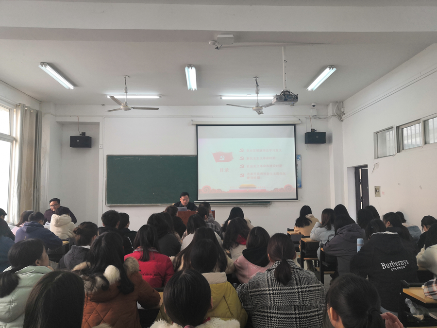 为增强当代大学生的党性认识,引导大学生学党史、知党情、跟党走,12月13日,咸宁职业技术学院纪委书记余为民在文C101教室为19级新生讲授了“中国共产党的光辉历程”专题党课。