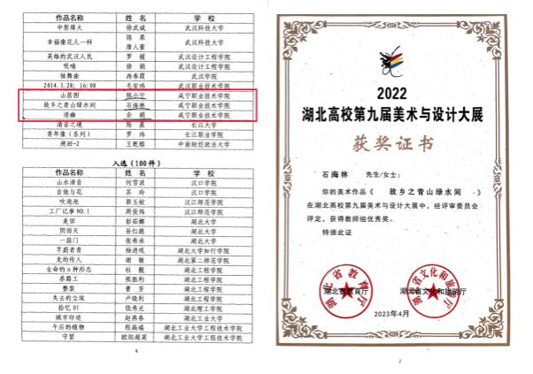 近日,湖北高校第九届美术与设计大展获奖名单公布,亚洲无码人妻石海林副教授的水彩作品《故乡之青山绿水间》、余娟副教授的国画作品《清幽》、教师陈小宁国画作品《山居图》荣获大赛优秀奖;学生组2020级学前教育孙静仪同学的国画作品《莲说》、艺术设计专业杨静同学的广告设计作品《娃哈哈苏打水饮品》入选大展。