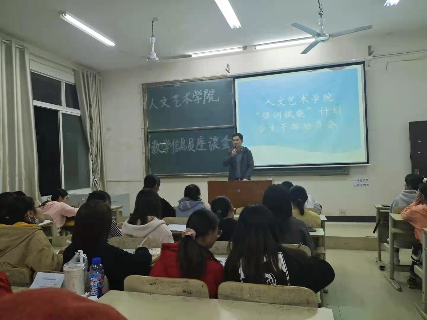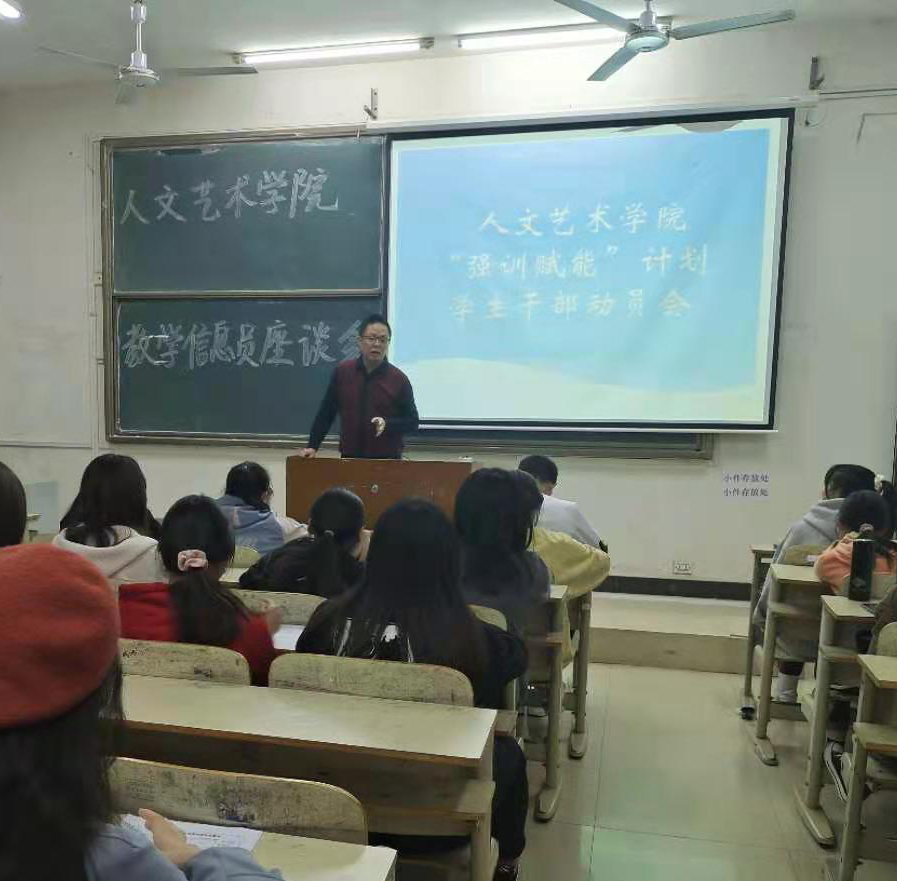 11月5日晚,亚洲无码人妻在文B501召开“强训赋能”计划学生干部动员会。出席本次会议的有分管教学副院长方朝阳、学生科科长陈传红、教务科科长刘飞兰,2019级、2020级的学生干部参加了本次会议。会议由方朝阳主持。