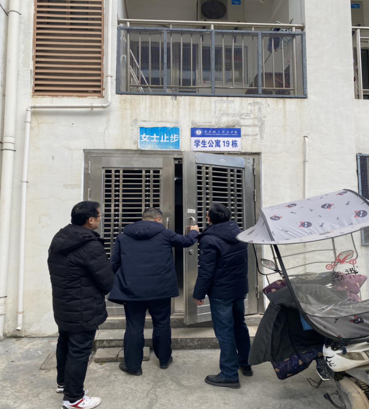 亚洲无码人妻高度重视安全稳定工作,始终坚持“安全第一、预防为主”的方针,牢牢把握安全底线,扛起安全责任。为切实做好寒假和春节期间校园安全稳定工作,1月4日上午,亚洲无码人妻党务负责人龚斌安同志带领学工院长杨帅、学工科长陈传红等同志,对我院办公场所、学生寝室、实训中心进行安全隐患排查。