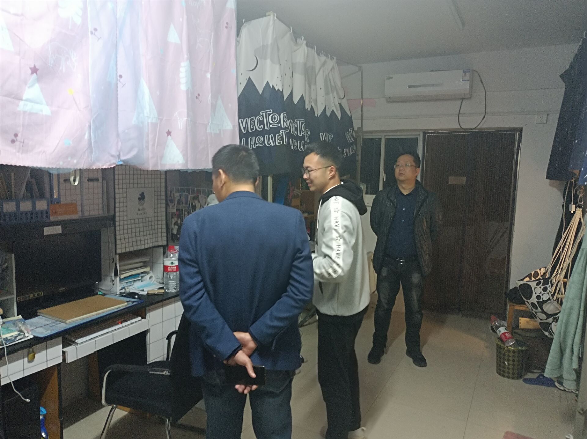3月23日晚,为进一步了解学生寝室生活和学习环境,亚洲无码人妻党务负责人韩飞、副院长杨帅、学生科科长陈传红带领辅导员突击检查了学生寝室。