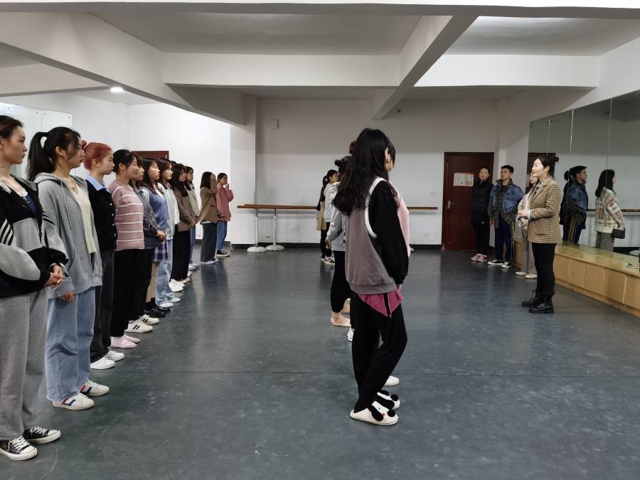 3月31日晚上7点,人文舞蹈工作室在舞蹈房四进行了最终的选拔,这次选拔主要是考察队员的舞蹈基本功和舞蹈表演水平。30位同学分成了6组在舞蹈房外等候,每5个队员一组同时入场接受考查,考查的重点是身体的柔韧性和协调性,经过激烈的角逐,最终24名同学成功入选舞蹈工作室。