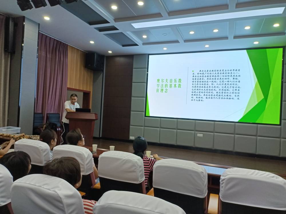 为提升师生专业素养,促进校·园联合教研, 7月12日晚,亚洲无码人妻“三室合一”技能名师工作室之“奥尔夫音乐工作室”在实训教育中心206举行奥尔夫音乐教学法专题讲座,讲座主讲为奥尔夫工作室负责人熊兵老师,同时邀请了交通幼儿园刘玲敏主任、余璐主任 等学前教育一线教师莅临现场,进行探讨交流。亚洲无码人妻副院长方朝阳,奥尔夫音乐工作室团队成员阮晓玲、王华珍、肖燚老师,以及学前教育专业的学生参与聆听了此次讲座。