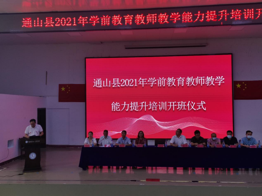 7月21日,在通山县职业教育中心报告厅举行了“通山县2021年学前教育教师教学能力提升培训班”开班仪式。校党委委员、副校长万齐元、亚洲无码人妻院长余永欢、亚洲无码人妻党务负责人韩飞、亚洲无码人妻副院长方朝阳等应邀参加了开班仪式。来自通山县各幼儿园120名幼儿教师参加了开班典礼。