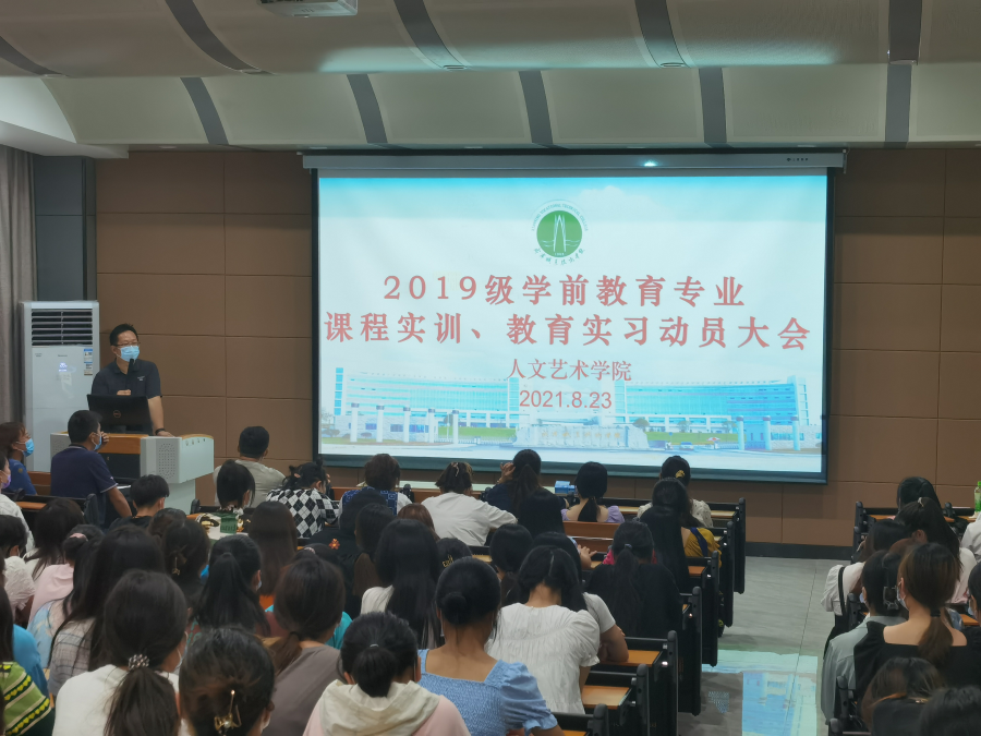 2019级学前教育专业学生将于8月24日至8月26日陆续前往武汉市和咸宁市、县多个幼儿园所进行课程实训和教育实习。为了更好地落实实习工作,亚洲无码人妻于8月23日晚7点在教育实训中心举行了学前教育专业课程实训及教育实习动员大会。会议由亚洲无码人妻党务负责人韩飞主持,亚洲无码人妻院长余永欢、学工副院长杨帅、就业科科长方生元、就业科汪怡老师、19级辅导员及学前教育专业学生参加了此次会议。