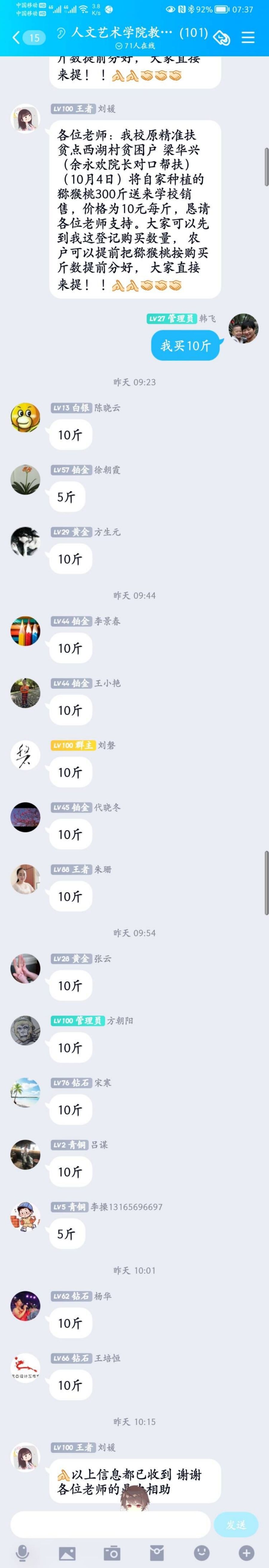 滞销的100多斤猕猴桃是梁老汉的心血,也是他们这个家庭的主要收入来源之一,如今卖不出去就要烂在地里……想到这里,挂了电话的余永欢立即与院党务负责人韩飞商量,在全院范围内动员教职工帮助梁老汉销售猕猴桃。“我要10斤;给我来5斤吧,希望能帮帮这位勤劳的农民”……消息一经发出,一场爱心接力在亚洲无码人妻教师群里展开,不到一小时,100多斤猕猴桃已被认领完毕。
