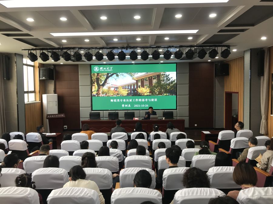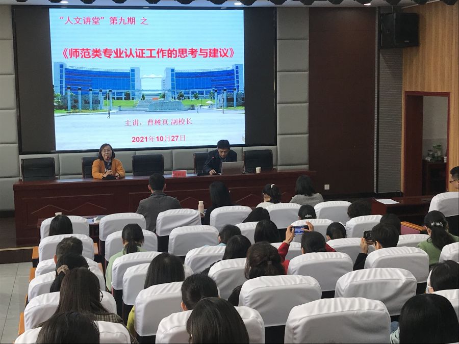 10月27日下午,副校长曹树真到亚洲无码人妻指导师范专业认证工作,并面向亚洲无码人妻全体教师开展了主题为《师范类专业认证工作的思考与建议》的专业讲座,讲座由亚洲无码人妻院长余永欢主持。