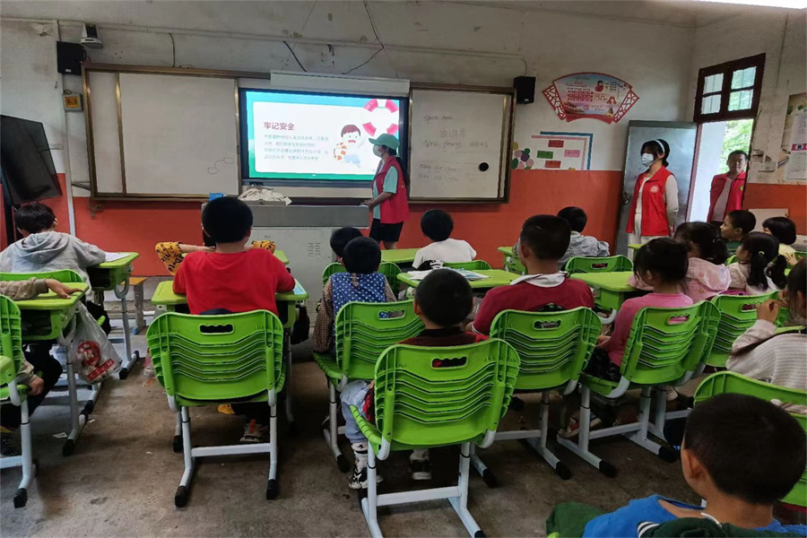 青年志愿者首先将安全普及送到了花纹小学,5月27日,在花纹小学开展了“保护生命安全,夏季你我平安”活动,活动以“防溺水”为引,教育学生重视生命安全,其次普及如何规避由基础设施损坏等造成的生命威胁,向学校老师提出防范措施。