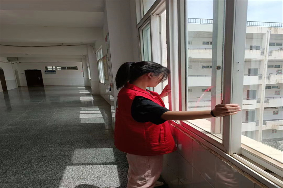 6月8日—9日,安全志愿者小组对校园内基础设施做检查工作。范围主要包括文华楼内外,实训中心楼内外,检查项目主要有消防设施检查卡的更新、高层外伸窗户及楼梯栏杆是否损坏、悬挂式宣传板是否牢固等等。志愿者们在楼内外进行细致检查,做到了不放过,不遗漏。