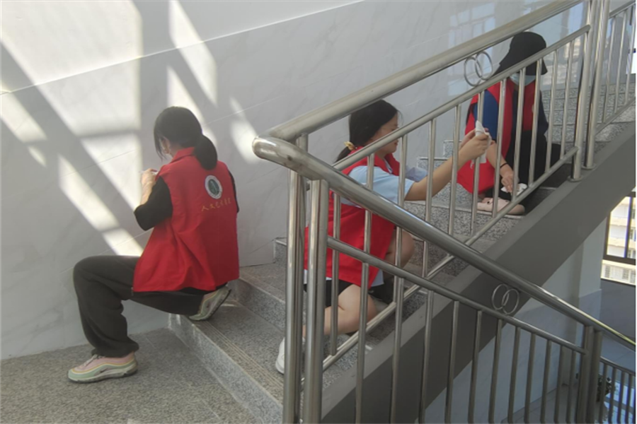 清晨的第一缕阳光洒满宁静的校园时,志愿者们已经身着红色马甲开始了对教育实训中心的打扫。志愿者们从“心”开始、从“细”入手,手持抹布、扫把、拖把对教育实训中心的卫生进行细致认真的清洗、打扫等,不放过室内外的每一个死角。志愿者们不怕脏不怕累,挥洒着勤劳的汗水,到处涌动着忙碌的身影。在大家共同的努力下,教育实训中心焕然一新,充满了活力。