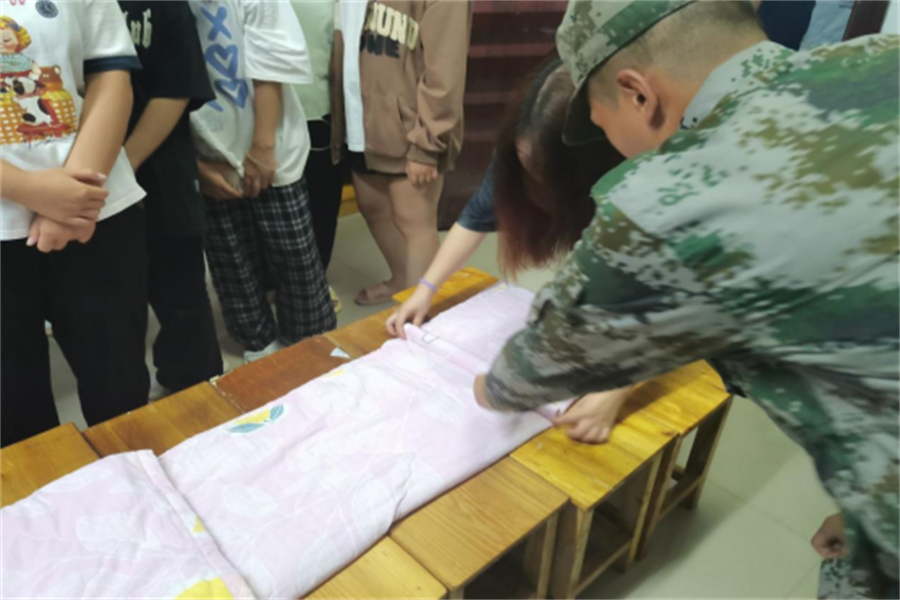 千里之行,始于足下。新学期新风貌从方方正正的豆腐块被子开始。教官们严谨认真示范,学生们一丝不苟学习,内务整理见关怀,细节呈现展真知。