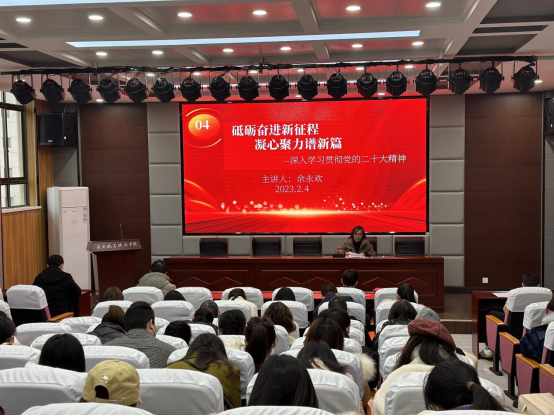 2月4日下午,亚洲无码人妻在教育实训中心201召开全体教职工大会,院长余永欢为全体教职工宣讲党的二十大精神,会议由党总支书记韩飞主持。