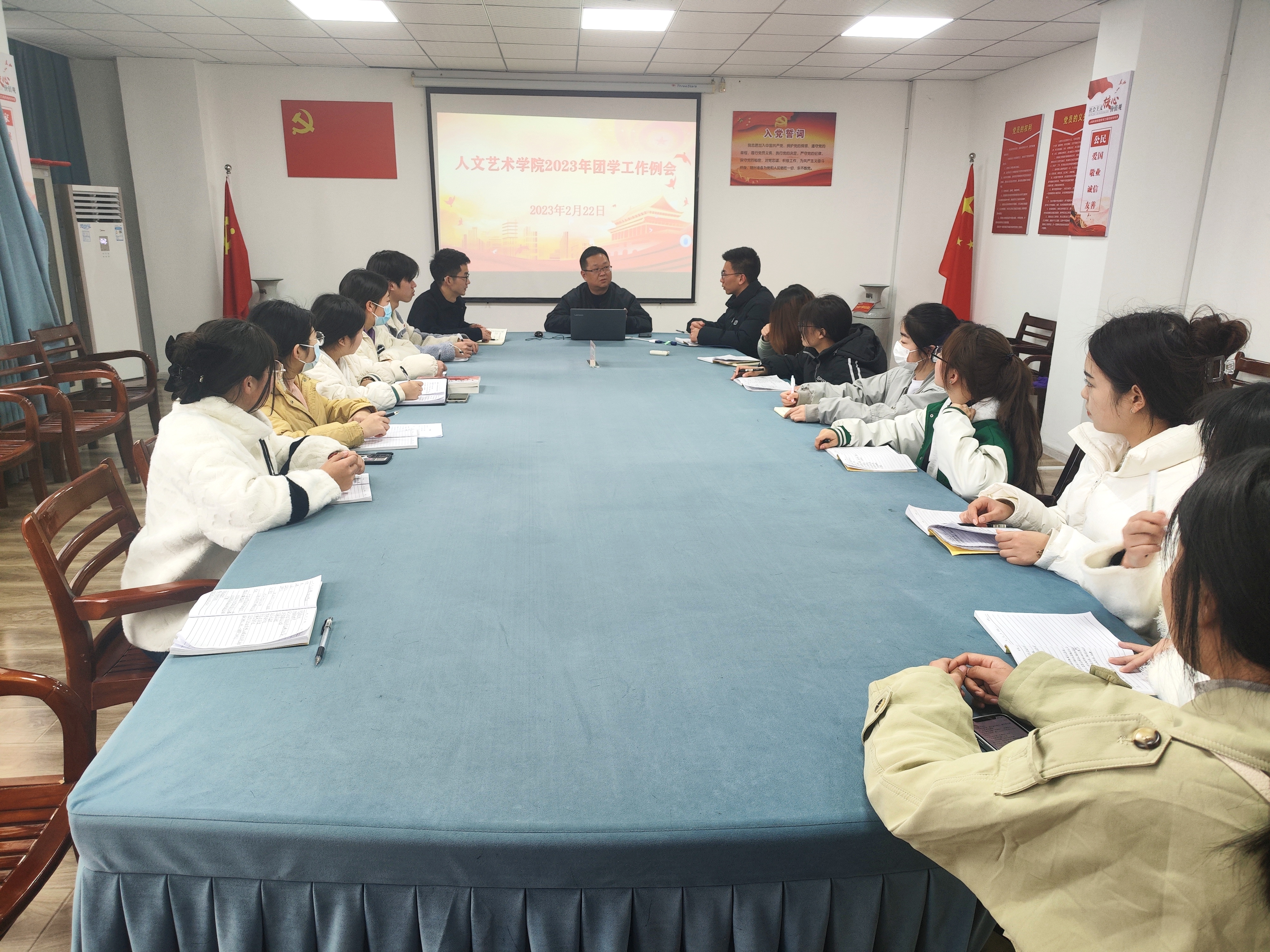 2月22日中午,亚洲无码人妻在教育实训中心7楼会议室召开团学工作例会。党总支书记韩飞、团总支书记李操和所有团学干部参加了会议,会议由李操主持。