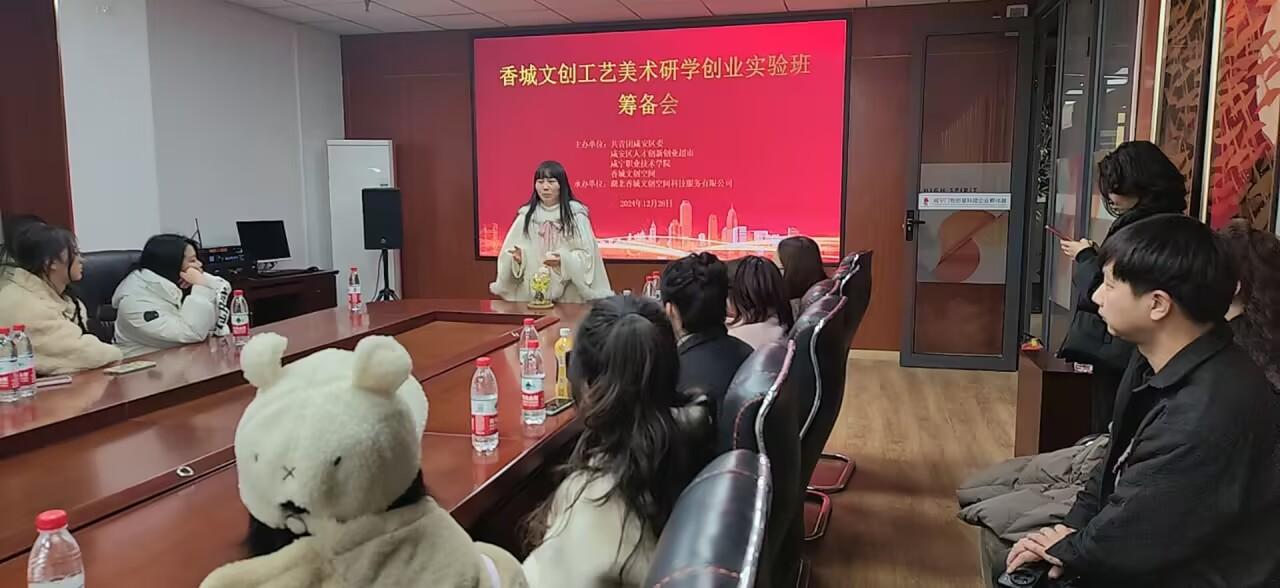 为激发学生对创意手工的兴趣,提升学生动手实践能力,12月28日,我院在香城文创空间召开美术研学创业实验班筹备会议。学院手工工作室团队教师及29名学生参加了会议。会议特别邀请咸安区团委许同同、香城文创空间负责人张超、微钩技能师钱思和掐丝珐琅技能师吴陈妮出席会议。