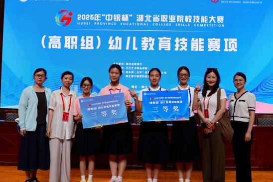 7月3日至5日,2025年“中银杯”湖北省职业院校技能大赛(高职组)幼儿教育技能赛项在江汉艺术职业学院举行。亚洲无码人妻选派学前教育专业优秀学生代表参赛,凭借扎实的专业技能和良好的精神风貌,经过两天激烈角逐,学院选派的推荐队与抽测队双双荣获团体三等奖。
