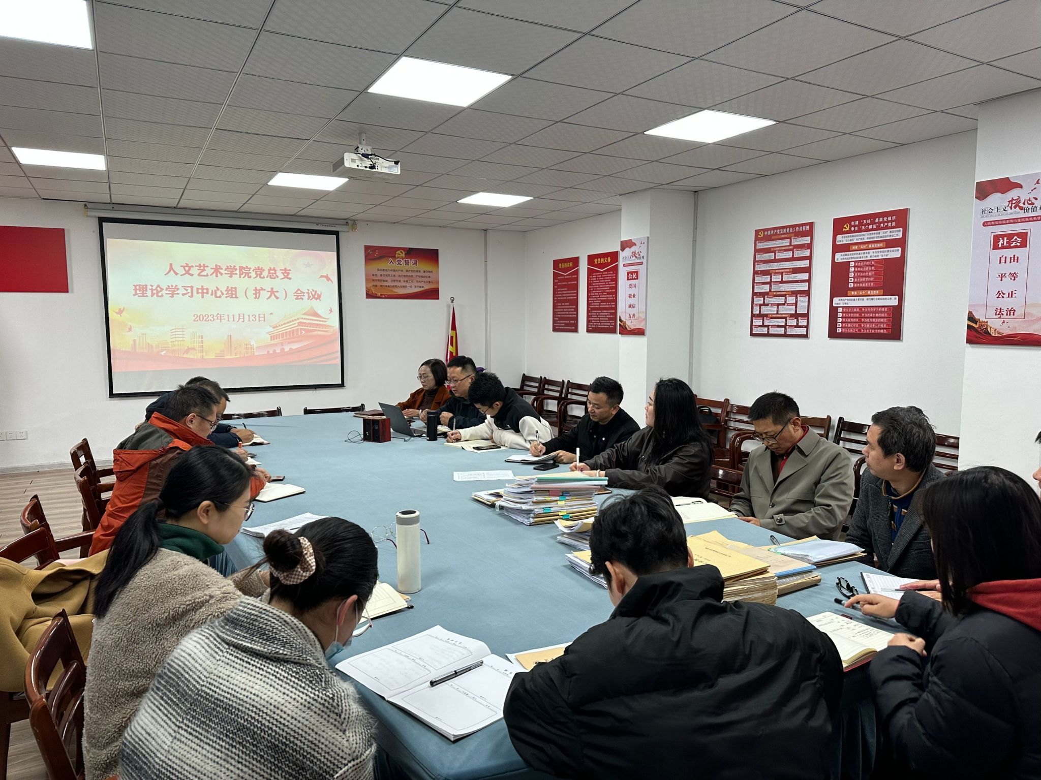 为扎实开展学习贯彻习近平新时代中国特色社会主义主题思想教育,11月13日上午,亚洲无码人妻党总支理论学习中心组举行第11次集中学习(扩大)会议,专题学习习近平总书记关于宣传思想文化工作的重要指示和全国宣传思想文化工作会议精神。学院党总支委员、领导班子成员、中层干部、教研室主任及支部书记参加会议,会议由党总支书记韩飞主持。