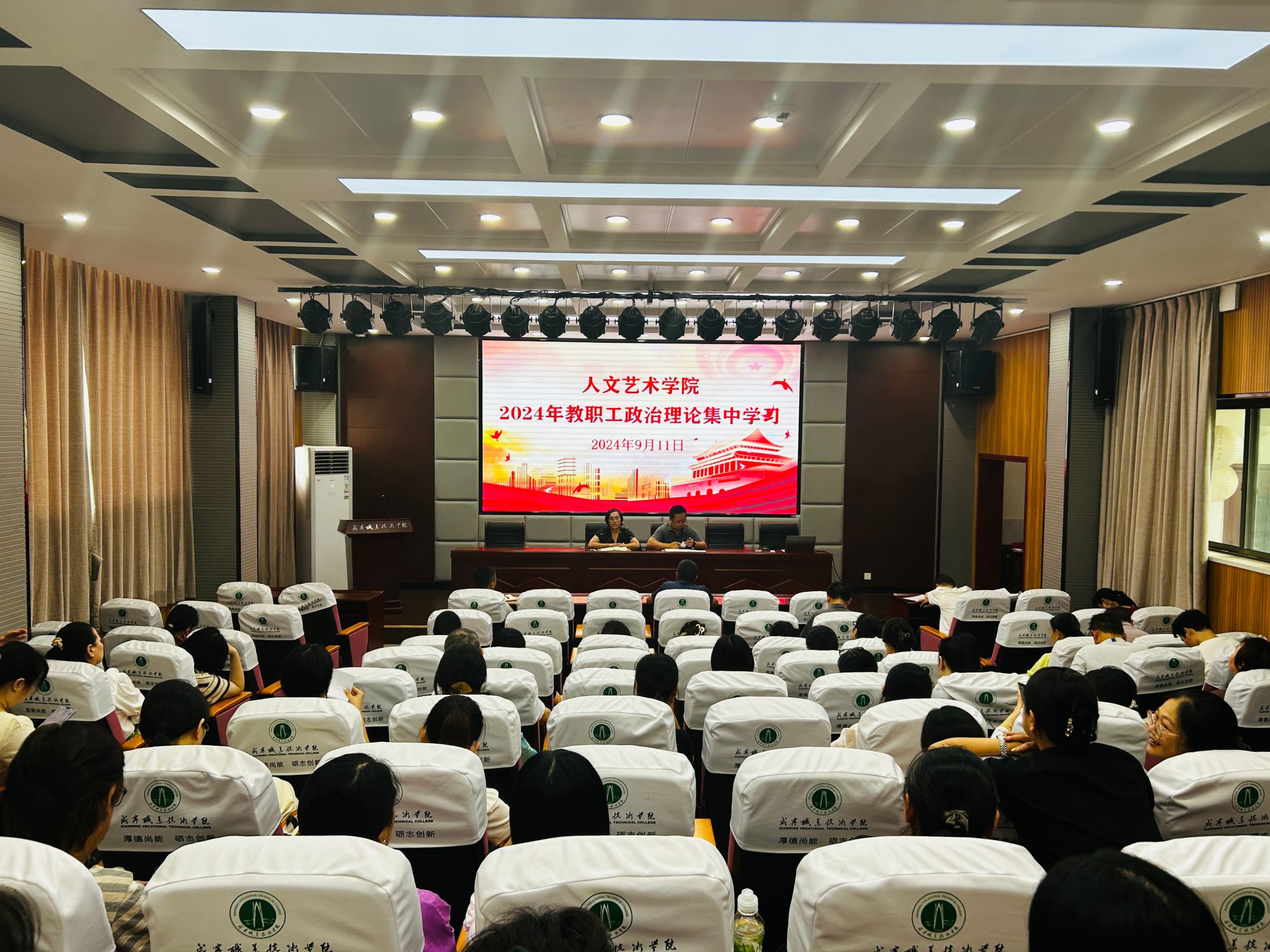 在第40个教师节到来之际,为大力弘扬教育家精神,加强学院师德师风建设,9月11日下午,亚洲无码人妻在教育实训中心201召开2024年度教职工政治理论第七次集中学习大会,会议由党总支书记韩飞主持。