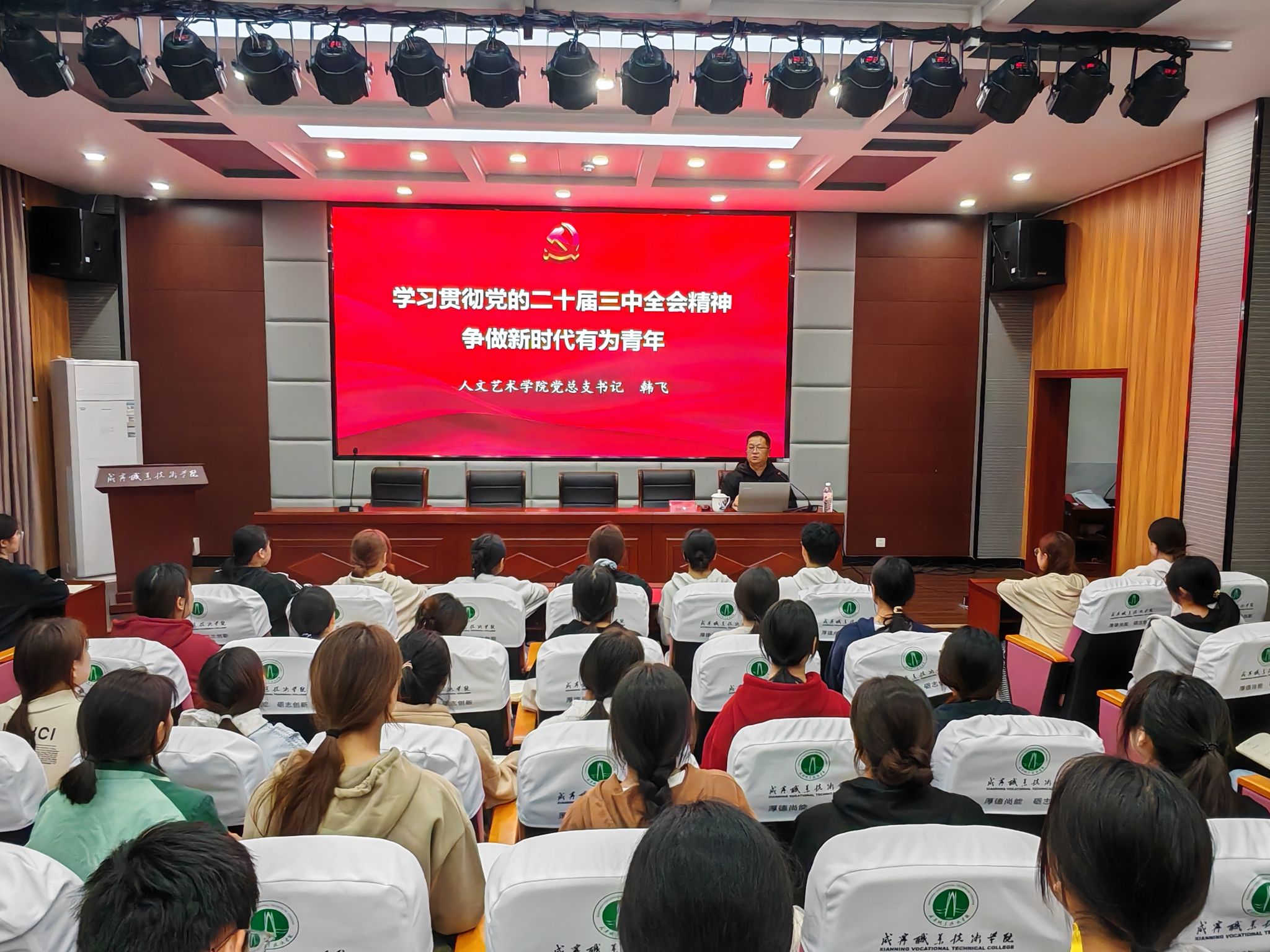 10月21日晚,亚洲无码人妻党总支书记韩飞在教育实训中心201报告厅为学院第25期入党积极分子宣讲党的二十届三中全会精神。