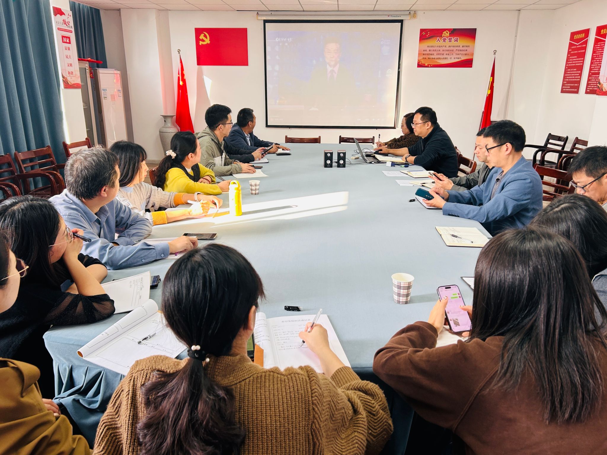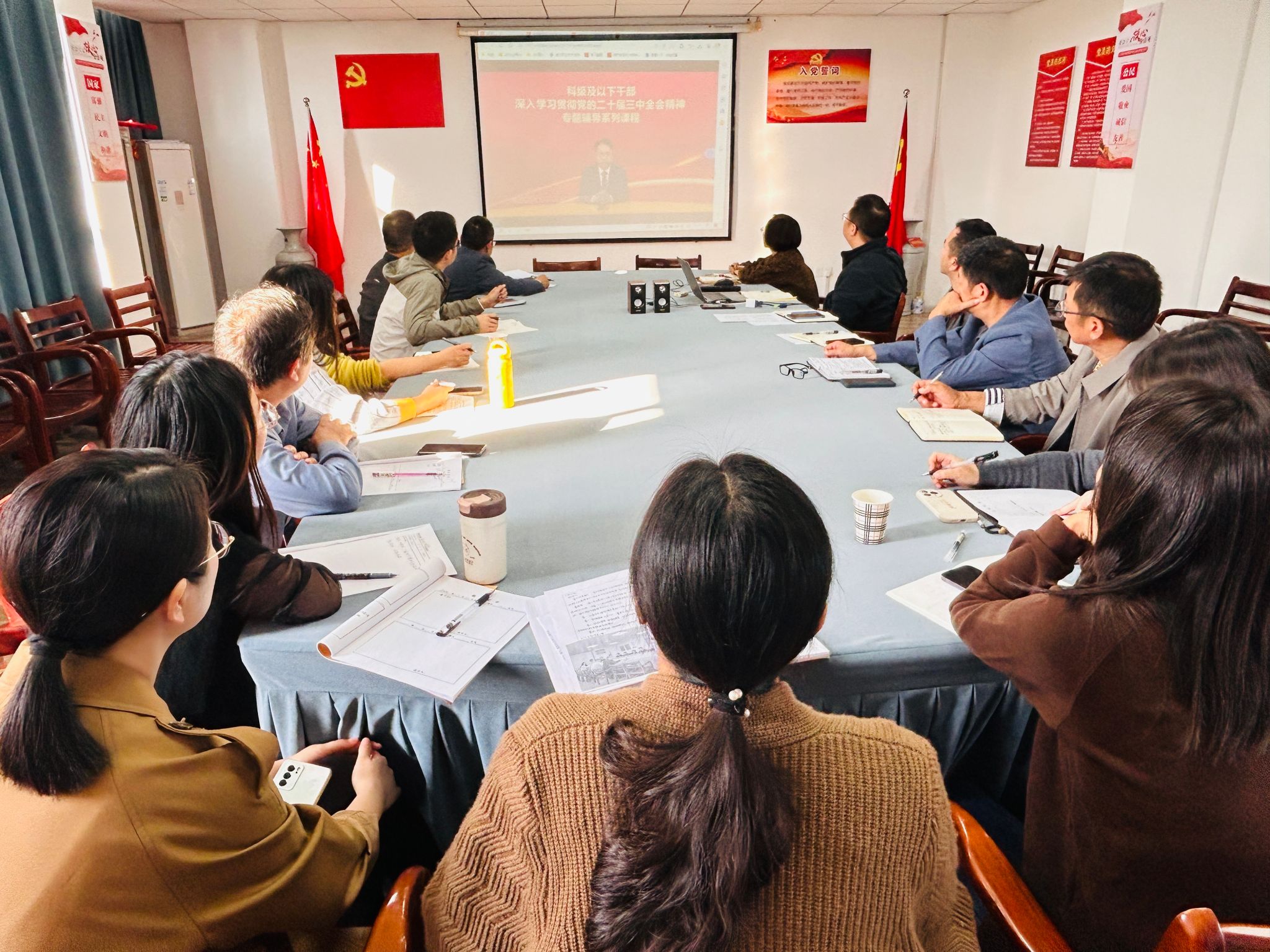 最后,根据《咸宁职业技术学院科级干部学习贯彻党的二十届三中全会精神培训工作方案》要求,参会人员集中观看由中央党校(国家行政学院)研究室主任、教授沈传亮所作的《深入学习贯彻习近平总书记关于全面深化改革的一系列新思想、新观点、新论断和党的二十届三中全会精神》报告。