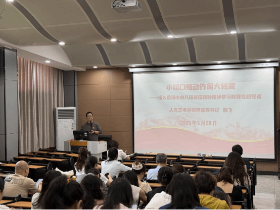 最后,党总支书记韩飞以《小切口推动作风大转变》为题为全体教职工讲授专题党课。韩飞分析了中央八项规定精神能转变作风的六点原因,点明学习教育的必要性,强调党员职工要将中央八项规定精神融入工作生活的每一个细节,通过思想引领、行为约束、群众监督“三位一体”的方式,推动作风建设长效化。要以“踏石留印、抓铁有痕”的劲头持之以恒地加强作风建设,为职业本科建设贡献力量。