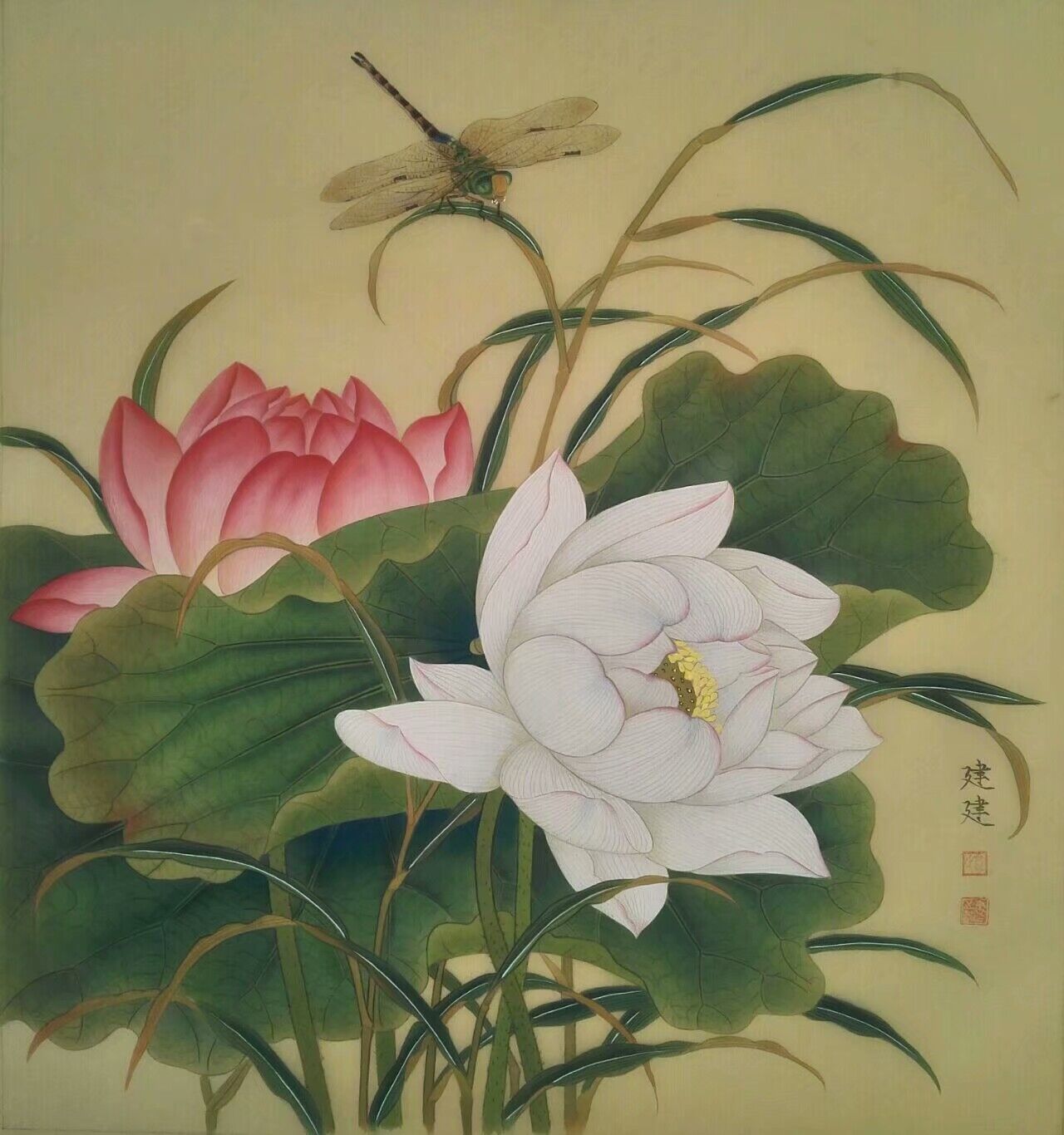 《荷花蜻蜓图》(作者:郭建建 获湖北省第六届大学生艺术节)
