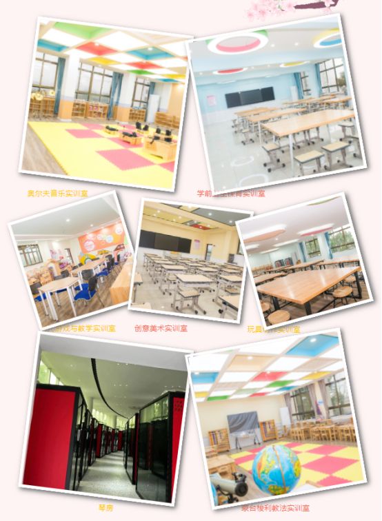 【实训条件】学前教育专业有近万余平方米的多功能校内实训基地。主要分布在教育实训中心、钢琴实训中心、舞蹈艺术中心。还有省级非遗大师工作室、名师工作室和校企共建课程实训室。还与市内外200多家实力雄厚、优质的公、民办幼儿园建立校外实训基地,有效推进学前教育专业学生教育技能、培训顶岗、实训就业等方面的培养。